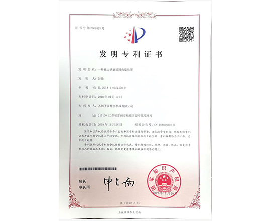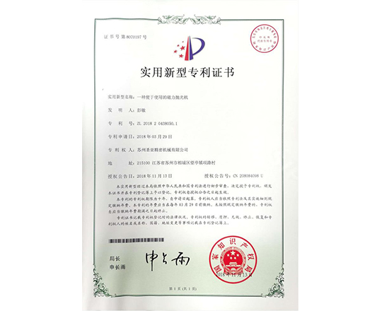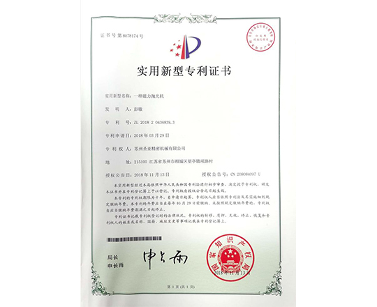 包括磁力拋光機、去毛刺設備在內的多項實用新型產品專利認證